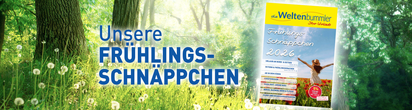 Der Frühling bringt frische Reiseideen und besonders lohnenswerte Preisvorteile. Mit unseren Frühlings-Schnäppchen 2026 haben Sie jetzt die Möglichkeit, ausgewählte Reisen zu besten Konditionen zu buchen.