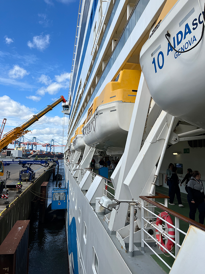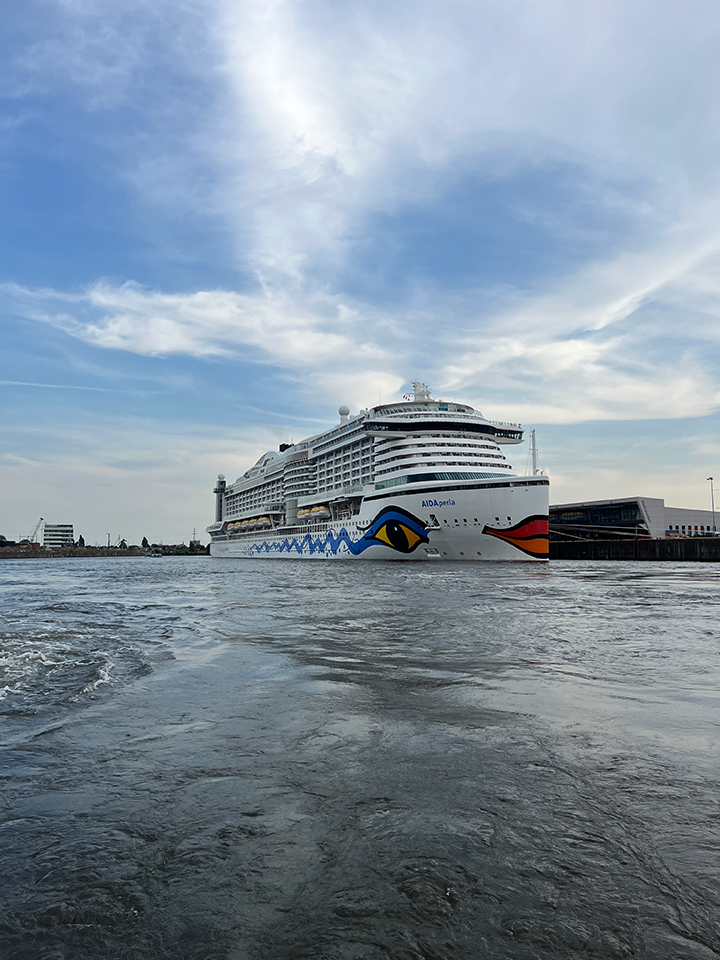 Ein besonderes Highlight war die Barkassenrundfahrt durch den Hamburger Hafen, die das maritime Flair perfekt abgerundet hat. Den krönenden Abschluss bildete das Auslaufen der AIDAperla – begleitet von Musik, Lichtern und einer ganz besonderen Atmosphäre, die pure Gänsehaut verursachte.