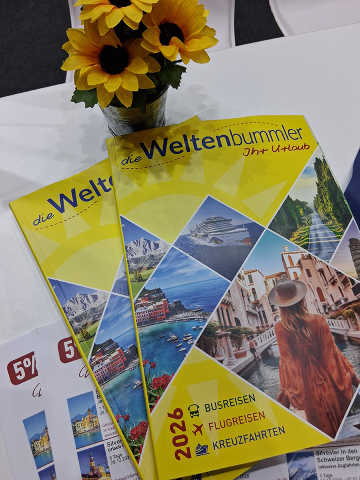 Vom 30. Oktober bis 2. November 2025 war Weltenbummler auf der Reisen & Caravan in Erfurt vertreten – direkt in unserer Heimatstadt! An unserem Messestand in Halle 1, Stand D27, präsentierten wir unsere neuen Reisekataloge Urlaub 2026 und Kurreisen 2026, stellten spannende Reiseideen vor und führten zahlreiche persönliche Gespräche mit treuen Stammkunden und neuen Weltenbummlern. Ob Busreise, Kreuzfahrt oder Kururlaub – die Messe bot Inspiration pur für alle, die gerne komfortabel und sorglos reisen.