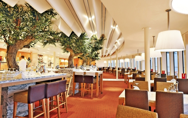 exklusive AIDA Shows im Theatrium; Diskothek; Casino; Bibliothek; Kunstgalerie; Bordshops; 8 Restaurants, 3 Snack-Bars und 13 Bars