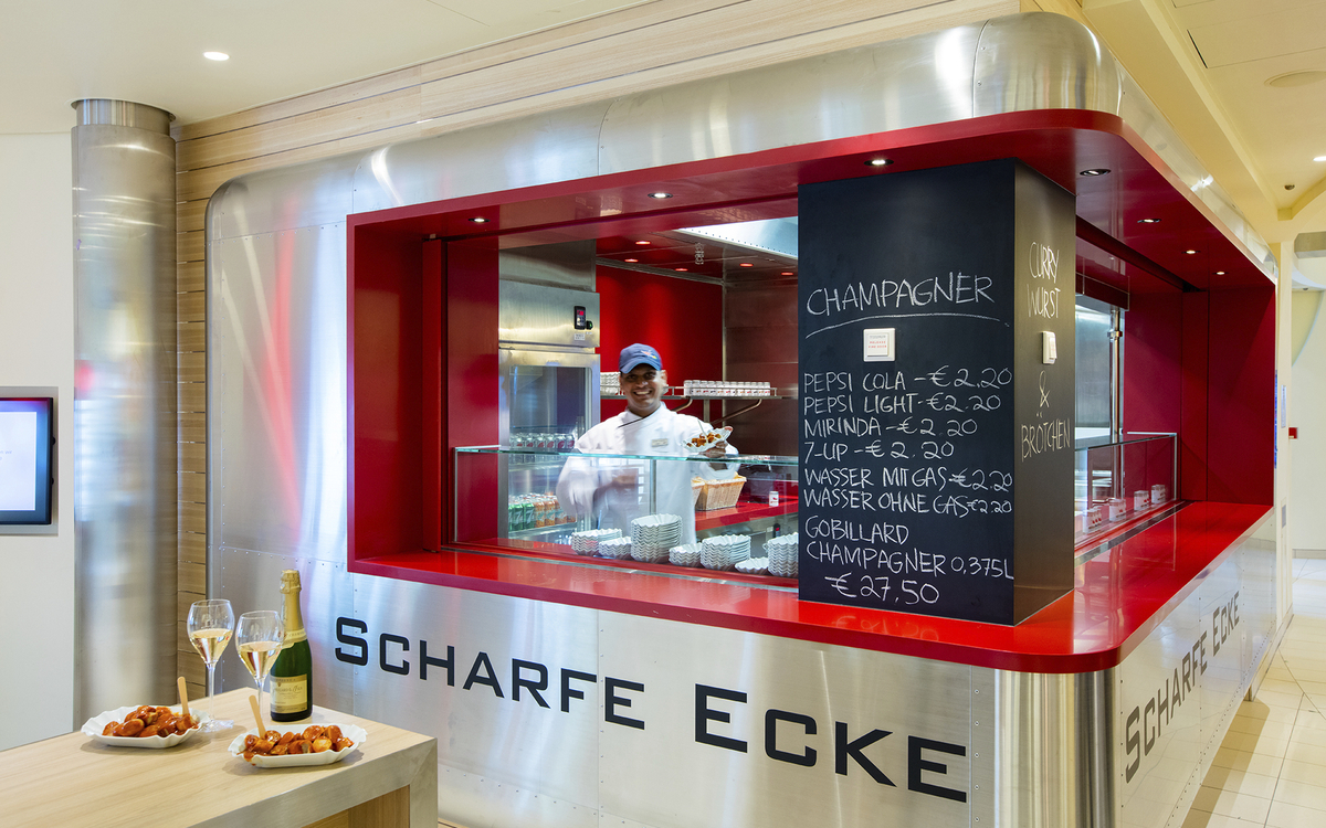 Euro. Sie bezahlen jedoch alles ganz praktisch nur mit Ihrer Bordkarte, die gleichzeitig Ihr Kabinenschlüssel und Zugangsausweis ist. Am bequemsten für Sie: Lassen Sie beim Check-In Ihre EC-Karte einlesen. Alternativ können Sie Ihre Endabrechnung in bar, mit der Kreditkarte – American Express, Diners, VISA oder Mastercard – zahlen.