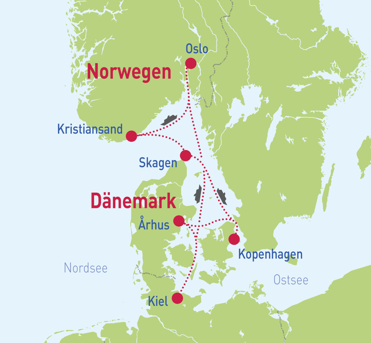 Kiel – Oslo – Kristiansand – Skagen – Kopenhagen – Århus – Kiel