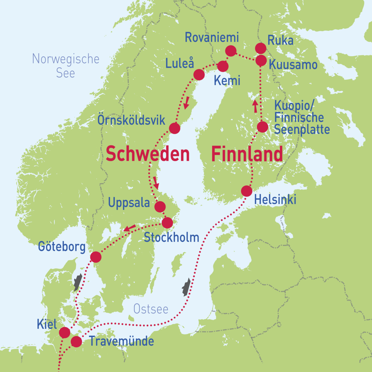 Helsinki – Finnische Seenplatte – Rentierfarm – Husky Safari – Finnisch Lappland – Uppsala – Stockholm