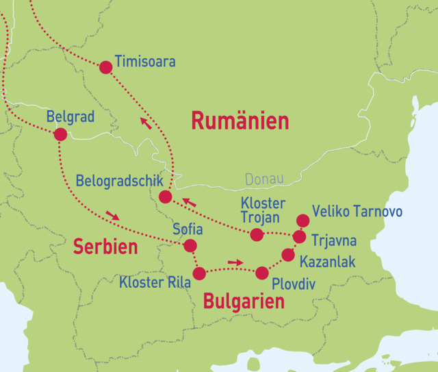 Belgrad – Sofia – Kloster Rila – Plovdiv – Veliko Tarnovo – Kloster Trojan