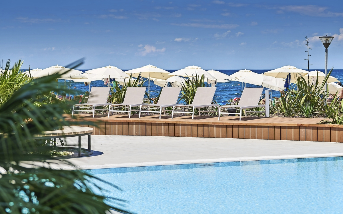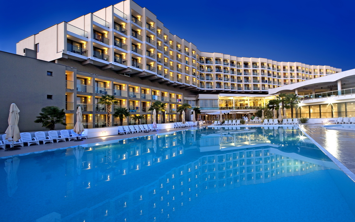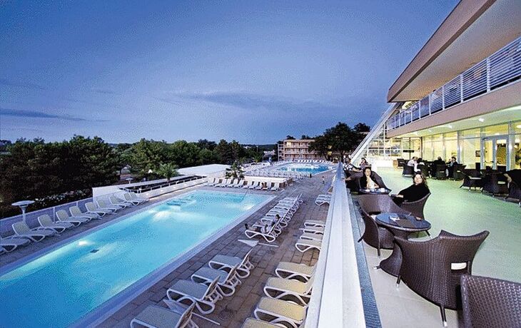 Ihr ****Hotel "Molindrio Plava Laguna" in Poreč liegt im Zelena Resort direkt am Meer, nur wenige Gehminuten vom Strand entfernt. In unmittelbarer Nähe befinden sich einige Restaurants, Bars und Geschäfte. Der Stadtkern von Poreč ist ca. 4 km entfernt und kann gegen Aufpreis per Boot oder Bummelzug erreicht werden. (Hauptsaison) Zu den sportlichen Aktivitäten im Hotel gehören Tennis, Tischtennis, Beachvolleyball, Wasserski und vieles mehr. (teilweise gegen Aufpreis, saisonal begrenzt). Das Hotel verfügt über zwei Außenpools (teilweise beheizt), ein Whirlpool im Wellnessbereich, Massagebereich, zwei Restaurants, Cafe, Lobbybar, Poolbar, Gemeinschaftslounge, Friseur, Souvenirgeschäft sowie Geldautomat. Die Nutzung von kostenfreiem Wi-Fi ist inbegriffen. In den Sommermonaten finden am zentralen Strand des Resorts Abendkonzerte, Theateraufführungen, Spiele und Kinovorführungen statt. Zum Abendessen sind Getränke vom Fass (Saft, Wasser, Tischwein weiß und rot, Bier) im Preis inbegriffen. Ihre Zimmer verfügen über Bad oder Dusche/WC, Haartrockner, Telefon, Sat-TV, Safe, Klimaanlage und Balkon.