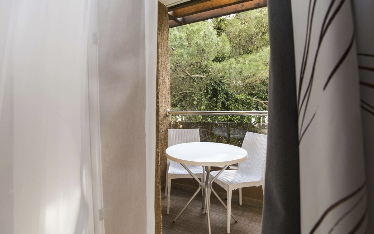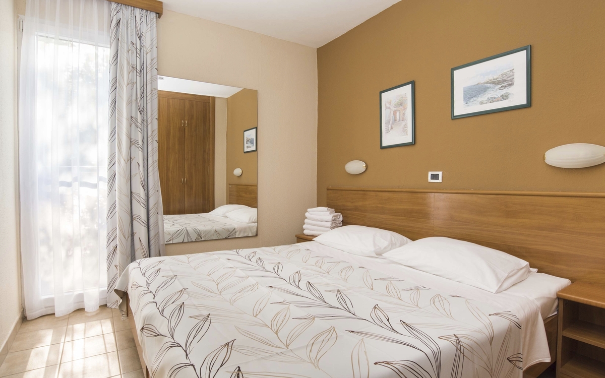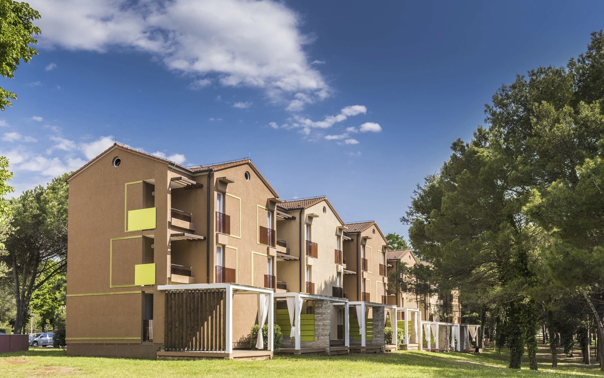 Die ***Apartments "Stella Plava Laguna" in Umag sind Bestandteil des Resorts "Stella Maris" und der perfekte Ort für einen erholsamen Urlaub in Istrien. Die ***Apartments "Stella Plava Laguna" liegen in einer mediterranen Vegetation nur wenige Gehminuten vom Meer entfernt. Das Meereswasser bei Umag ist mit dem Zertifikat "Blaue Flagge" bewertet worden und steht für die außergewöhnliche Reinheit des Meeres und der Strände. Die Anlage "Stella Maris Resort" bietet unterschiedliche Lokalitäten, z.B. das "Stella Maris Restaurant" mit Halbpensionsmöglichkeit (Frühstücks- und Abendessen-Buffet), mehrere Themenrestaurants, Snack Bars und Café Bars. In der Ferienanlage befinden sich ein Meerwasserpool und ein Pool für Kinder. Eine Vielzahl sportlicher Aktivitäten ist möglich, z.B. Wassergymnastik, Pilates, Yoga, Aerobic, Tauchen, Fahrrad fahren u.v.m. (Aktivitäten z.T. gegen Aufpreis vor Ort und saisonal begrenzt) Am Abend finden verschiedene Veranstaltungen wie Liveshows, thematische Abende oder die Auftritte des Animationsteams statt. Die Apartments haben eine Fläche von ca. 28 qm und sind für maximal 3 Personen geeignet. Sie verfügen über Bad oder Dusche/WC, ein Schlafzimmer mit 2 Betten, ein Wohnzimmer mit einem ausziehbaren Sessel, Küchenzeile, Klimaanlage, Telefon, Sat-TV und Balkon.