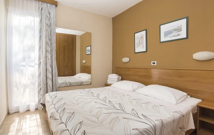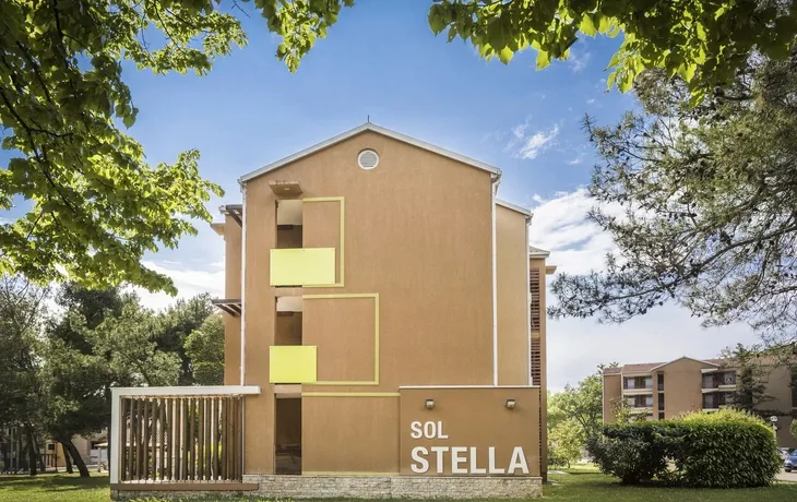 Die ***Apartments "Stella Plava Laguna" in Umag sind Bestandteil des Resorts "Stella Maris" und der perfekte Ort für einen erholsamen Urlaub in Istrien. Die ***Apartments "Stella Plava Laguna" liegen in einer mediterranen Vegetation nur wenige Gehminuten vom Meer entfernt. Das Meereswasser bei Umag ist mit dem Zertifikat "Blaue Flagge" bewertet worden und steht für die außergewöhnliche Reinheit des Meeres und der Strände. Die Anlage "Stella Maris Resort" bietet unterschiedliche Lokalitäten, z.B. das "Stella Maris Restaurant" mit Halbpensionsmöglichkeit (Frühstücks- und Abendessen-Buffet), mehrere Themenrestaurants, Snack Bars und Café Bars. In der Ferienanlage befinden sich ein Meerwasserpool und ein Pool für Kinder. Eine Vielzahl sportlicher Aktivitäten ist möglich, z.B. Wassergymnastik, Pilates, Yoga, Aerobic, Tauchen, Fahrrad fahren u.v.m. (Aktivitäten z.T. gegen Aufpreis vor Ort und saisonal begrenzt) Am Abend finden verschiedene Veranstaltungen wie Liveshows, thematische Abende oder die Auftritte des Animationsteams statt. Die Apartments haben eine Fläche von ca. 28 qm und sind für maximal 3 Personen geeignet. Sie verfügen über Bad oder Dusche/WC, ein Schlafzimmer mit 2 Betten, ein Wohnzimmer mit einem ausziehbaren Sessel, Küchenzeile, Klimaanlage, Telefon, Sat-TV und Balkon.