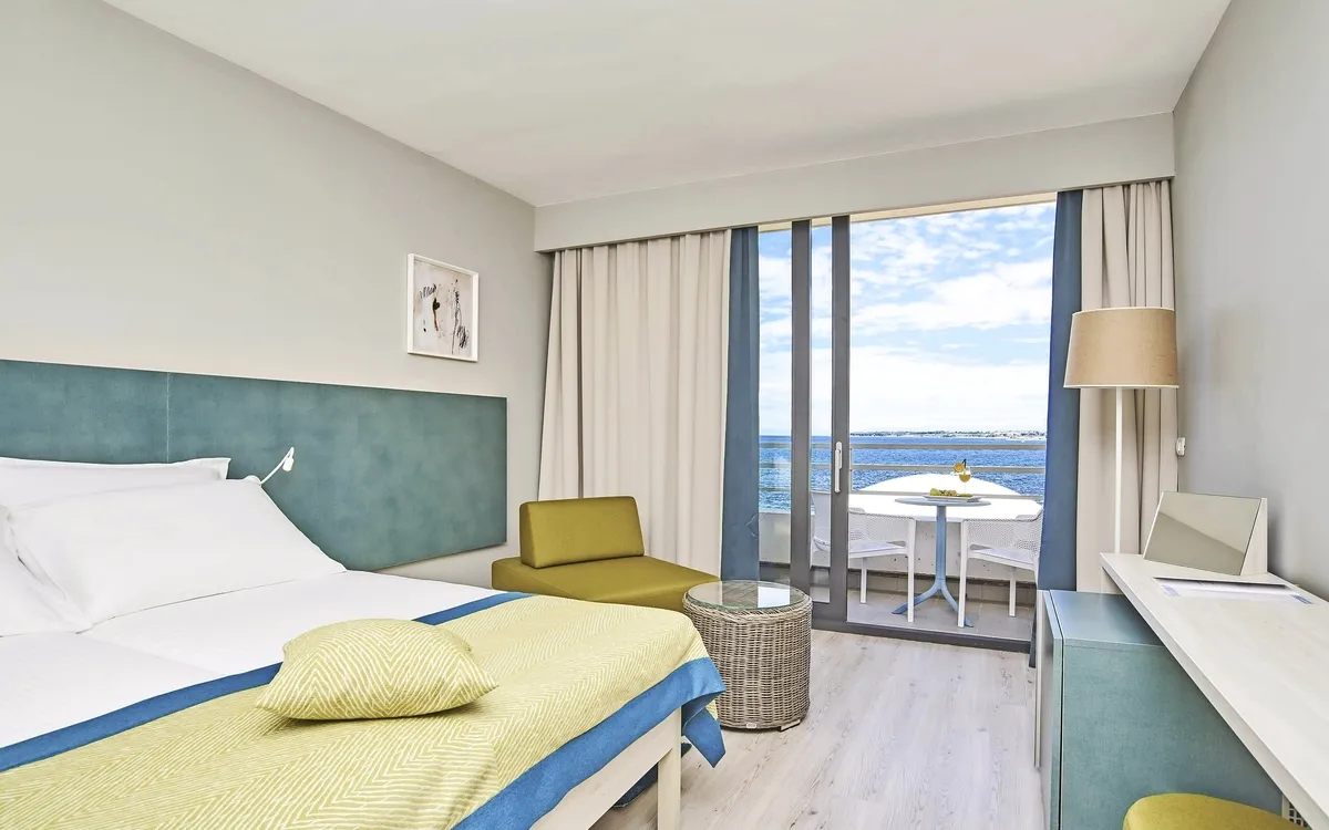 Ihr ***Hotel "Materada Plava Laguna" in Poreč liegt direkt am Meer und ist nur wenige Gehminuten vom Strand entfernt. Ihr charmantes und modernes Urlaubshotel ist umgeben von weitläufigen Parks, mediterranen Gärten und zahlreichen Rasenflächen zum Sonnenbaden. Der ideale Platz für echte Erholung. Entlang der Uferpromenade erreichen Sie das wunderschöne Städtchen Poreč zu Fuß bereits in einer halben Stunde oder bequem mit dem örtlichen Bähnchen (Hauptsaison). In der Nähe des Hotels befinden sich Volleyball- und Fußballplätze und am Strand können Sie verschiedene Wassersportarten ausprobieren. (Aktivitäten z. T. gegen Aufpreis vor Ort und saisonal begrenzt) In Ihrem Hotel erwarten Sie ein Außenpool, ein Restaurant, eine Aperitif- und Poolbar, einen Massagesalon sowie ein Friseur. Die Nutzung von kostenfreiem Wi-Fi ist inbegriffen. Zum Abendessen sind Getränke vom Fass (Saft, Wasser, Tischwein weiß und rot, Bier) im Preis inbegriffen. Ihre Zimmer verfügen über Bad oder Dusche/WC, Haartrockner, Telefon, Sat-TV und Balkon.