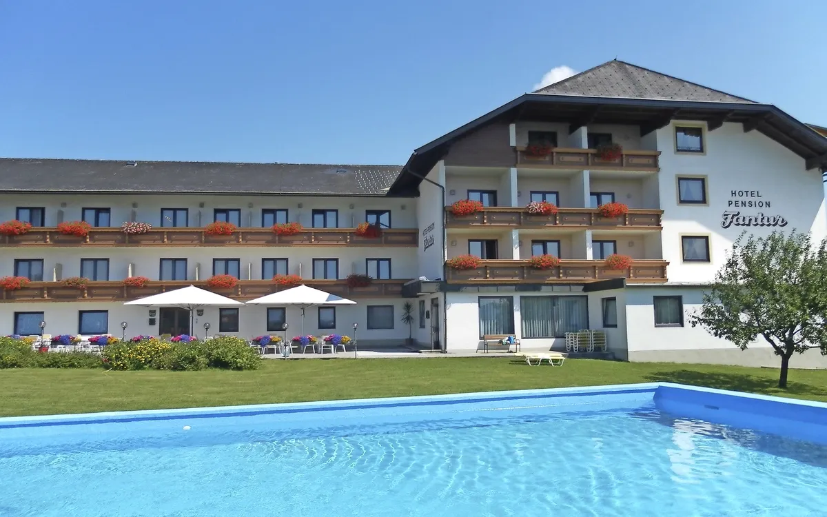 Ihr ***Hotel "Fantur" liegt ca. 3 km außerhalb des bekannten Ortes Velden in ruhiger Lage mit herrlicher Aussicht auf die Karawanken. Das Haus verfügt u.a. über rustikale Gasträume, Freilichtterrasse, eine bodenständige Küche mit Produkten aus eigener Landwirtschaft. Ihre Zimmer sind mit Bad oder Dusche/WC, Haartrockner, Balkon, Telefon und Sat-TV ausgestattet.