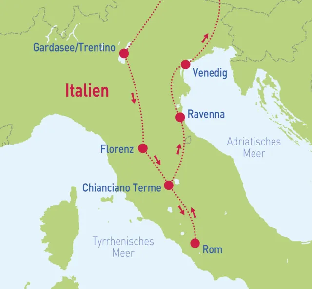 Italien zum Entdecken - Mo. 04.05. - Sa. 09.05.26Italien zum Entdecken - Mo. 21.09. - Sa. 26.09.26Italien zum Entdecken - Mo. 12.10. - Sa. 17.10.26