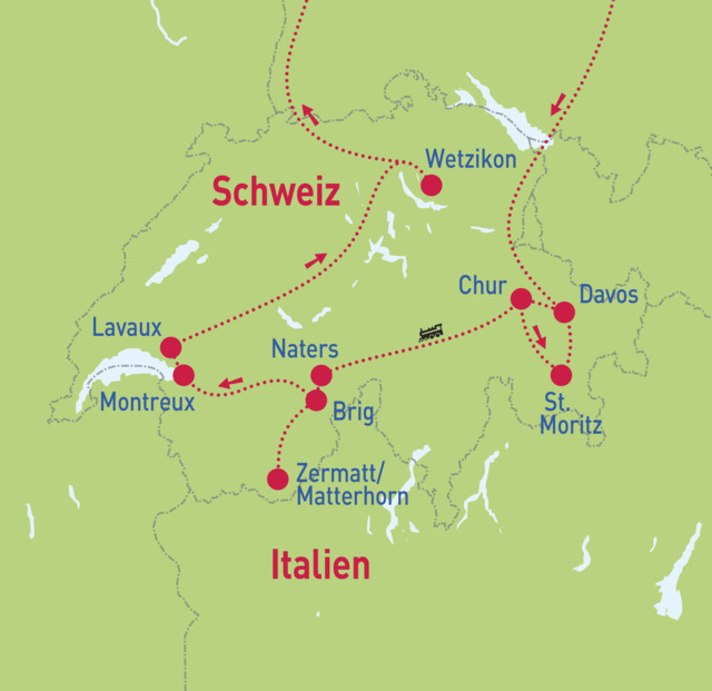 St. Moritz – Glacier-Express – Zermatt – Aletschgebiet – Montreux
