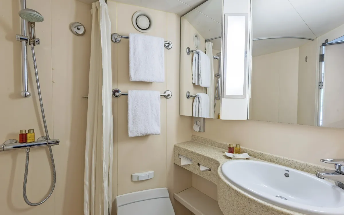 Die Kabinen sind stilvoll und komfortabel eingerichtet mit Dusche/WC, Sat-TV, Telefon, Haartrockner, individuell regulierbarer Klimaanlage/Heizung und Safe. Die Kabinen auf dem Mittel- und Oberdeck sind ca. 14,5 m² groß. Sie bieten nebeneinanderstehende Betten, die auf Wunsch getrennt gestellt werden können. Auf dem Oberdeck verfügen die Kabinen über bis zum Boden reichende Panoramafenster zum Öffnen (französischer Balkon). Die Kabinen auf dem Mitteldeck haben große zu öffnende Panoramafenster. Die Hauptdeck Kabinen verfügen über nicht zu öffnende Aussichtsfenster. Die Hauptdeck achtern Kabinen sind ca. 11,5 m² groß und sind alle mit einem Klappbett und einem Sofabett ausgestattet.