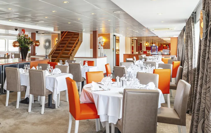 Die in den Jahr 2015 gebaute MS „LOIRE PRINCESSE“ lädt Sie auf eine erlebnisreiche und unvergessliche Flusskreuzfahrt ein. Da das hochmoderne Schiff mit einem Schaufelradantrieb ausgestattet ist, kann die Loire befahren werden, obwohl diese einen niedrigen Wasserstand hat. Entspannung steht auf dem 90 m langen und 15 m breiten Schiff im Vordergrund. Es gibt drei Decks, davon zwei Passagierdecks und ein Sonnendeck, worauf man auf einem der zahlreichen Liegestühle die vorbeiziehende Landschaft genießen kann. Im modernen, weitläufigen Panorama-Restaurant werden Sie mit französischer Küche verwöhnt. Tagsüber können Sie im Souvenirshop des Schiffs stöbern oder über das kostenlose WLAN im Internet surfen. Abends lassen Sie den Urlaubstag in der eleganten Lounge-Bar mit Tanzfläche und großer Fensterfront ausklingen. Die Bordsprachen sind Französisch und Deutsch. Gezahlt wird bar in Euro oder mit Kreditkarte (EuroCard, VISA). Die Stromspannung ist 220 V.