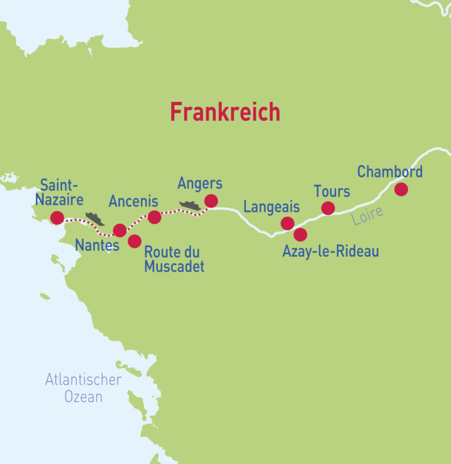Kreuzfahrt auf der Loire - Mo. 04.05. - Di. 12.05.26Kreuzfahrt auf der Loire - So. 16.08. - Mo. 24.08.26