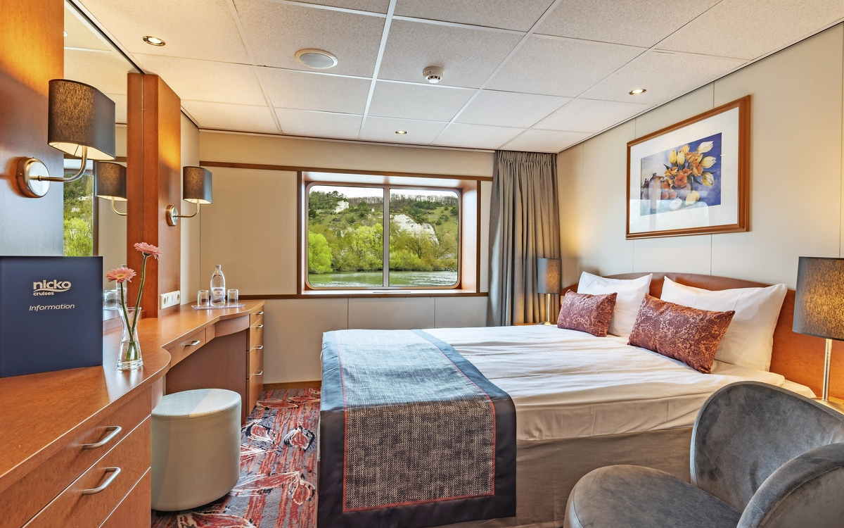 Bei allen Kabinen handelt es sich um Außenkabinen. Sie verfügen über Dusche/WC, Haartrockner, Sat-TV, Telefon, Safe und individuell regulierbare Klimaanlage. Die Kabinen auf dem Mittel- und Oberdeck sind ca. 14 m² groß. Die Deluxe Kabinen auf dem Oberdeck verfügen über eine absenkbare Panoramafront (Juliet Balkon), die Deluxe Kabinen auf dem Mitteldeck über große zu öffnende Panoramafenster. Die anderen Mitteldeck-Kabinen haben große nicht zu öffnende Panoramafenster. Sie bieten nebeneinanderstehende Betten, die auf Wunsch getrennt gestellt werden können. Die Hauptdeck Kabinen sind ca. 11 m² groß, haben große nicht zu öffnende Aussichtsfenster und sind alle mit einem Klappbett und einem Sofabett ausgestattet.