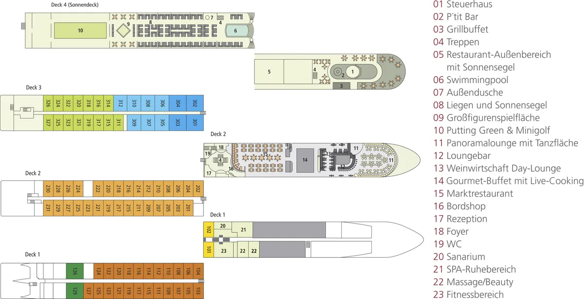 Unsere Partnerreederei versucht, Ihre Kabinenwünsche innerhalb Ihrer gebuchten Kategorie zu berücksichtigen, was jedoch nicht immer gelingt.