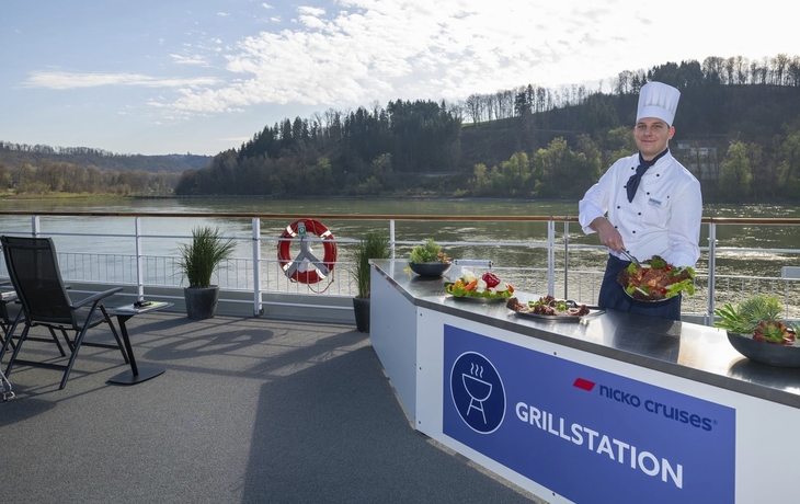 Komfort, Stil, eine moderne Einrichtung und viel Panorama erwarten Sie an Bord unserer "BOLERO", der im Winter 2023/24 modernisiert wurde. Genießen Sie einzigartige Ausblicke in bester Gesellschaft auf dem großzügigen Sonnendeck mit Windschutzelementen, Sonnensegel, Liegestühlen, Stühlen und Tischen oder ganz privat von Ihrer Kabine aus. Für entspannte Momente steht der großzügige Wellnessbereich mit Sauna, Ruhebereich, Whirlpool und Fitnessgeräten zur Verfügung. Im gemütlichen Panorama-Restaurant zaubert der Küchenchef täglich Gaumenfreuden auf Ihren Tisch. Die aufmerksame Crew verwöhnt Sie rund um die Uhr. Die Bordwährung ist Euro, die Bezahlung erfolgt bar, mit EC-Karte oder Kreditkarte (Mastercard, VISA, PIN-Nummer erforderlich). Die Stromspannung ist 220 V.