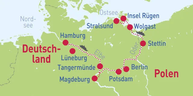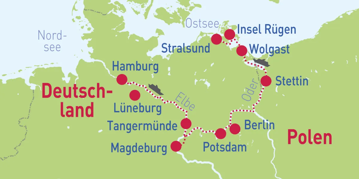 Stralsund – Rügen – Stettin – Berlin – Potsdam – Magdeburg – Lüneburg – Hamburg