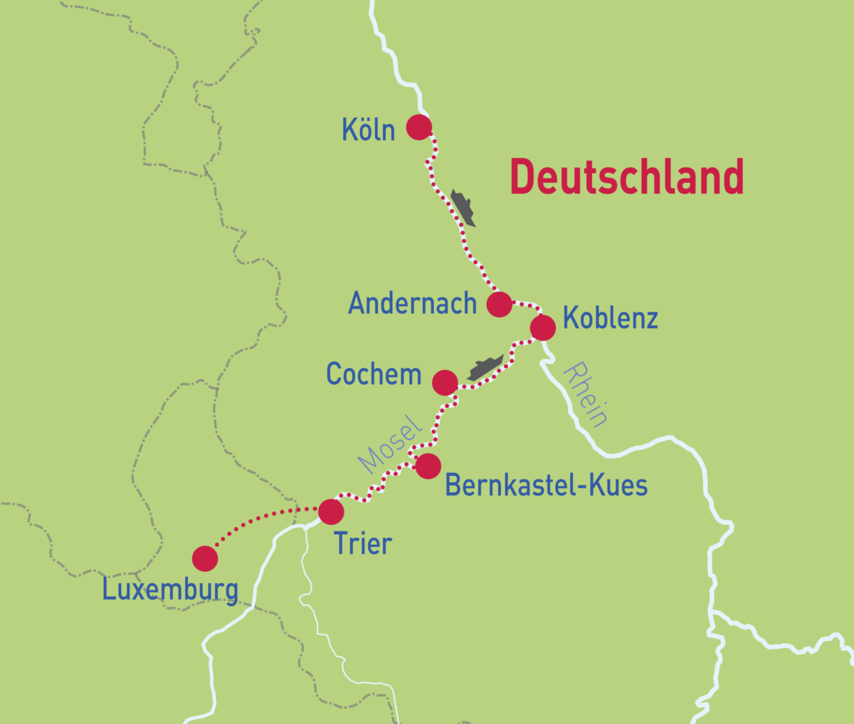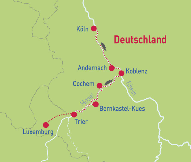 Köln – Cochem – Trier – Bernkastel-Kues – Koblenz – Andernach – Köln