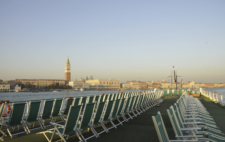 Ihr Schiff hat an zentraler Stelle in Venedig fest gemacht. Von hier aus startet Ihre Stadtführung, bei der wir Ihnen neben dem Markusplatz noch weitere Höhepunkte der Stadt zeigen. Zum Mittagessen werden Sie an Bord erwartet. Anschließend haben Sie den ganzen Nachmittag Zeit für eigene Erkundungen. Entdecken Sie Ihr Venedig!