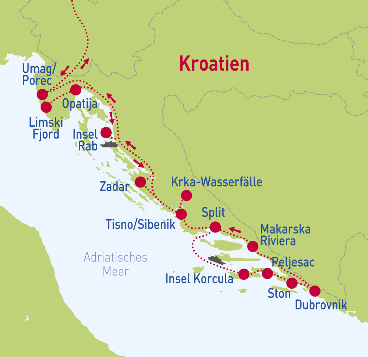 Kroatien-Rundreise - So. 26.04. - Do. 07.05.26Kroatien-Rundreise - So. 20.09. - Do. 01.10.26