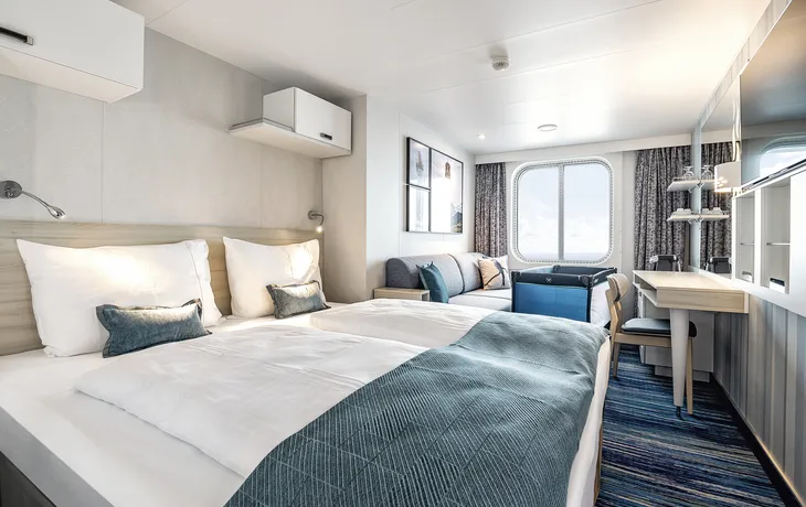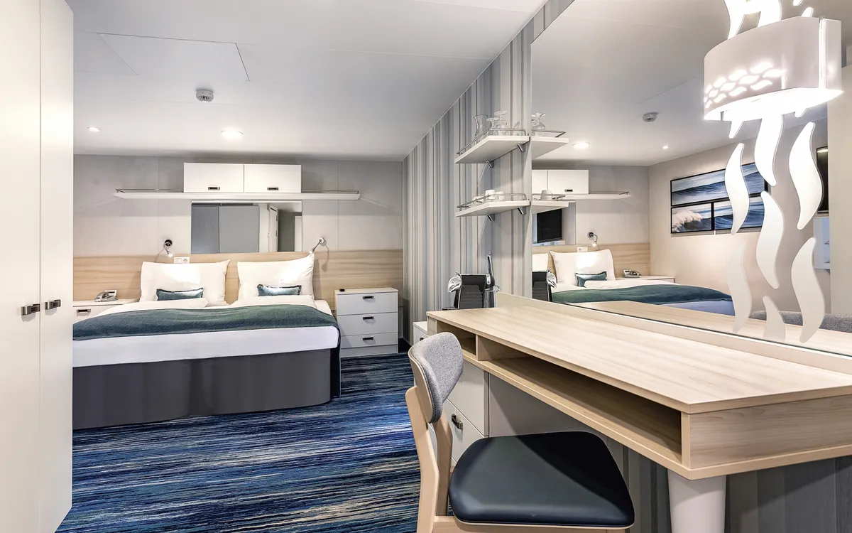 Die Kabinenverteilung innerhalb Ihrer gebuchten Kategorie obliegt der Reederei. Unsere Partnerreederei versucht, ihre Kabinenwünsche innerhalb Ihrer gebuchten Kategorie zu berücksichtigen, was jedoch nicht immer gelingt.