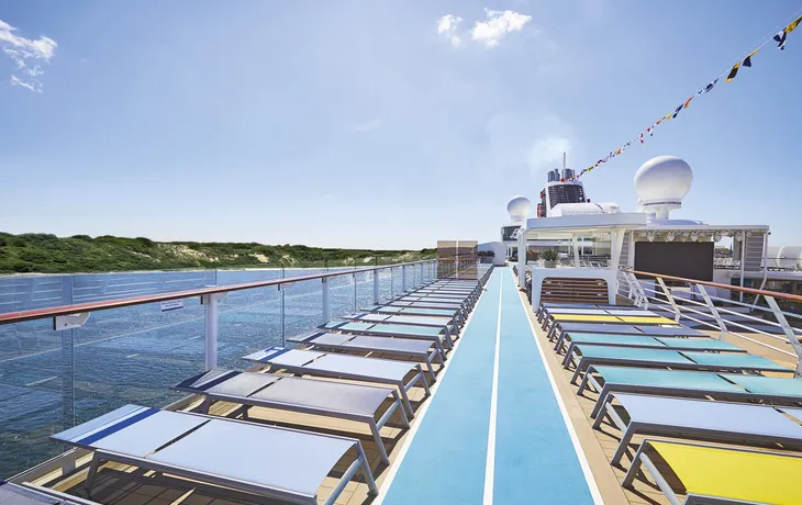 Wellnessfans werden vom riesigen Spa- und Fitnessbereich der Mein Schiff 1 hellauf begeistert sein. Auf mehr als 2.000 Quadratmetern gibt es zahlreiche Möglichkeiten, den Alltag vollständig zu vergessen und sich tiefenentspannt zu regenerieren. Der neue offene Pool- und Whirlpoolbereich Lagune bietet sich vorrangig an, aber auch die Saunen und der exklusiv gestaltete Spa & Meer Ruheraum sind Magneten für Ruhesuchende. Massagen und Anwendungen runden die perfekte Wellness-Kreuzfahrt ab.