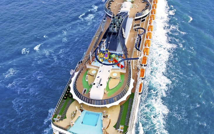 Vier Pools und 12 Whirlpools, Aquapark; MSC Aurea Spa mit Schönheitssalon, Solarium, Massagen, Dampfbäder, Sauna und Fitnesscenter, Shuffleboard, Power-Walking-Pfad