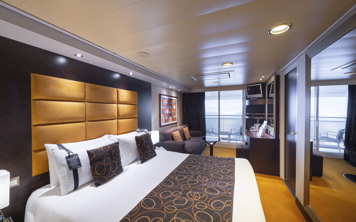 Alle Kabinen sind klimatisiert und verfügen über Dusche/WC, Haartrockner, interaktives TV, Telefon, Minibar und Safe.