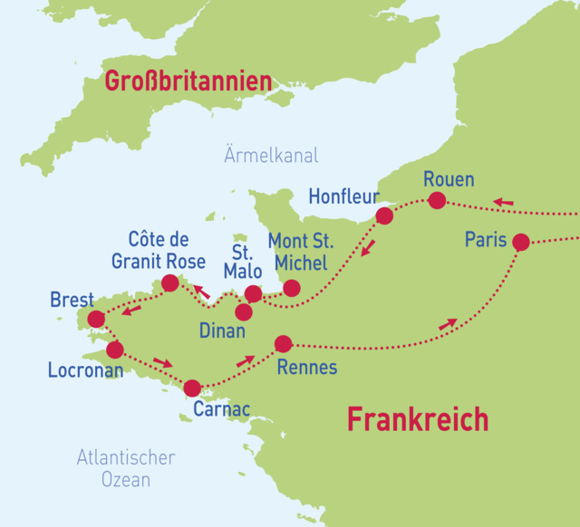 Rouen – Mont St. Michel – Saint-Malo – Cap Fréhel – Carnac – Rennes – Paris
