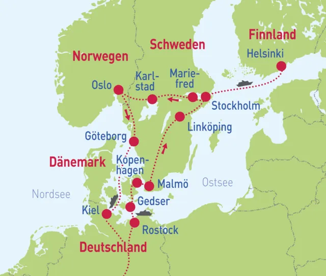 Nach dem Frühstück haben Sie Freizeit. Flanieren Sie entlang der Akerbrygge und machen Sie einen kleinen Stadtbummel durch die Haupteinkaufsstraße Karl Johans Gate oder flanieren Sie in Richtung Schloss. Am späten Vormittag Weiterfahrt nach Göteborg und Einschiffung auf Ihr Fährschiff. Übernachtung an Bord.