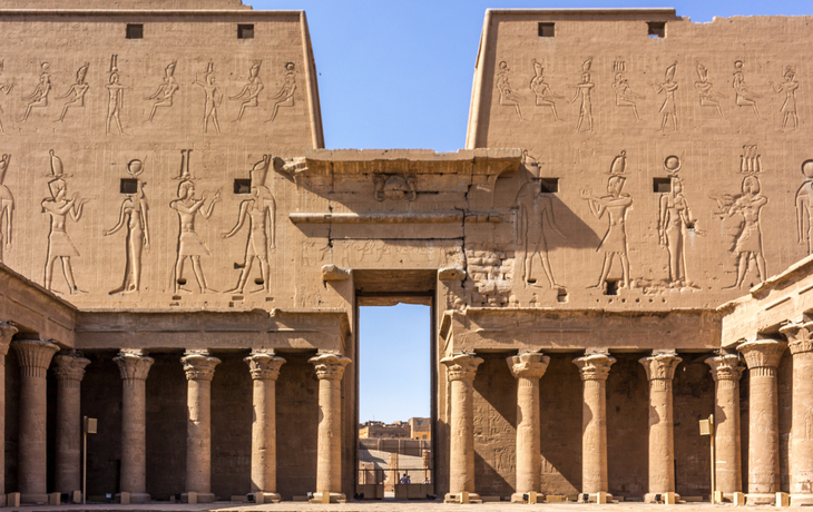 Besichtigung vom Tempel des falkenköpfigen Horus in Edfu, eine der besterhaltendsten Tempelanlagen des alten Ägypten. Ein gewaltiger Horusfalke aus Granit bewacht den Eingang zur Säulenhalle. (Aufpreis) Weiterfahrt nach Kom Ombo und Besichtigung des Sobek-Tempels. (Aufpreis) Ziel des Tages ist Assuan.