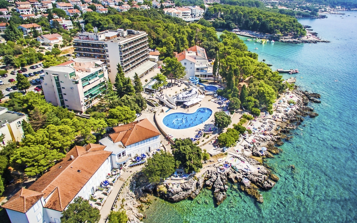 Ihr ***Hotel "Drazica" auf der Insel Krk liegt am Strand, ca. 800 m vom Stadtzentrum Krk entfernt und verfügt über Lift, Restaurant, zwei Außen-Swimmingpools, Fitnessraum, Poolbar, Souvenir-Shop und Massagesalon. Alle Zimmer mit Bad oder Dusche/WC, Haartrockner, Telefon, Sat-TV & Klimaanlage.