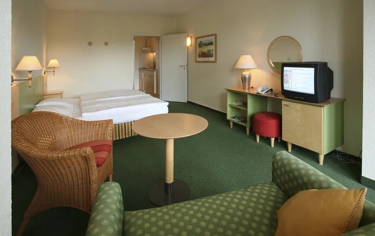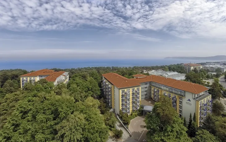 Direkt hinter Düne und Meer begrüßt das familienfreundliche ***+ "IFA Rügen Hotel & Ferienpark" seine Gäste mit hoteleigener, Parkanlage und den Häusern "Ostseeblick", "Ostseeperle" und "Strandidyll" (nicht miteinander verbunden). Neben verschiedenen Restaurants laden die "Plaza Bar" und das "Vitarium" zum Verweilen ein. Hier erstreckt sich auf 3.000 m² der wohl größte Wintergarten Rügens mit südländischem Flair. Im Erlebnisbad "Vitamar" ist zu jeder Jahreszeit Badespaß garantiert. Das Erlebnisbad verfügt über Wasserrutsche, Erlebnisgrotten und Wasserfälle. Im Wellnessbereich "IFArelax" findet man den Sauna- und Fitnessbereich. Die Zimmer/Appartements sind mit Dusche/WC, Haartrockner, Telefon, TV & Balkon ausgestattet.