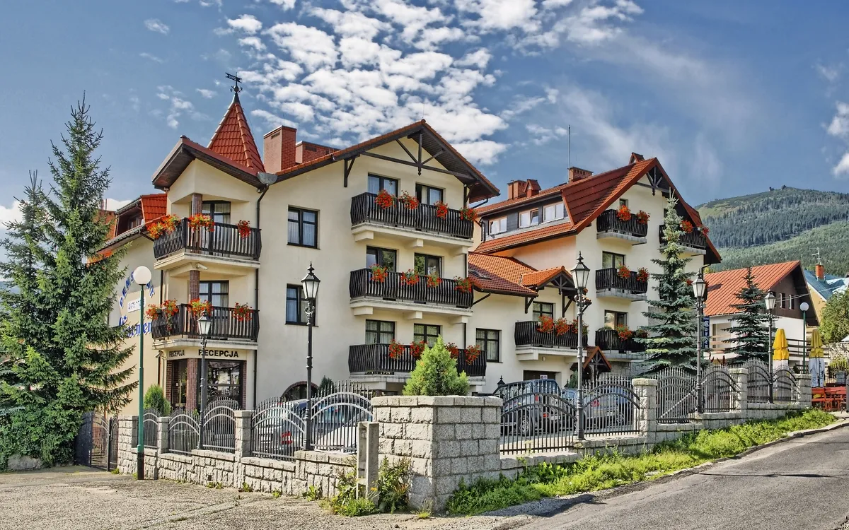 Wir haben für Sie ein gutes Mittelklassehotel in Schreiberhau gebucht, z.B. das Hotel "Carmen". Das Hotel liegt ca. 10 Gehminuten zum Ortszentrum entfernt und verfügt unter anderem über Restaurant, Bar und Terrasse. Des Weiteren gibt es im Hotel Sauna und Whirlpool. (Eintritt gegen Aufpreis) Alle Zimmer sind mit Bad oder Dusche/WC, Telefon und Sat-TV ausgestattet.