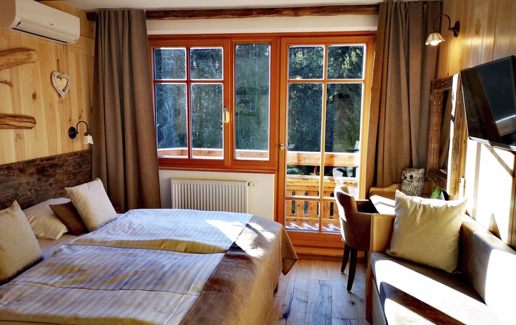 Ihr ****"Ribno Alpine Hotel" liegt am Rande des idyllischen Ortes Bled, umgeben von Wäldern und herrlicher Natur. Die komfortablen Zimmer sind im alpinen Stil eingerichtet und verfügen über Bad oder Dusche/WC, Haartrockner, Telefon, Sat-TV, Klimaanlage und WLAN. Entspannen Sie im Wellnessbereich, genießen Sie regionale Küche im Restaurant und an der Bar und lassen Sie auf der Außenterrasse die idyllische Lage auf sich wirken.