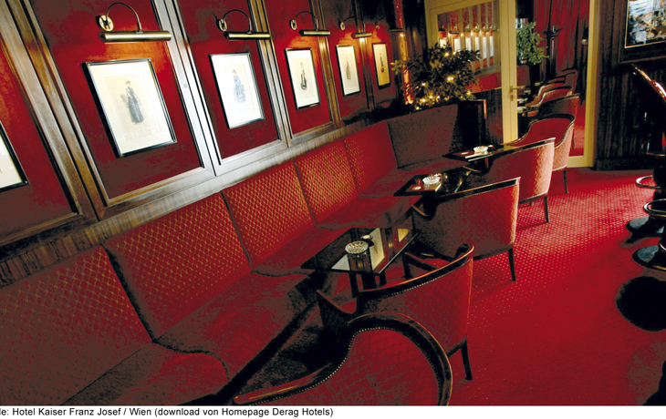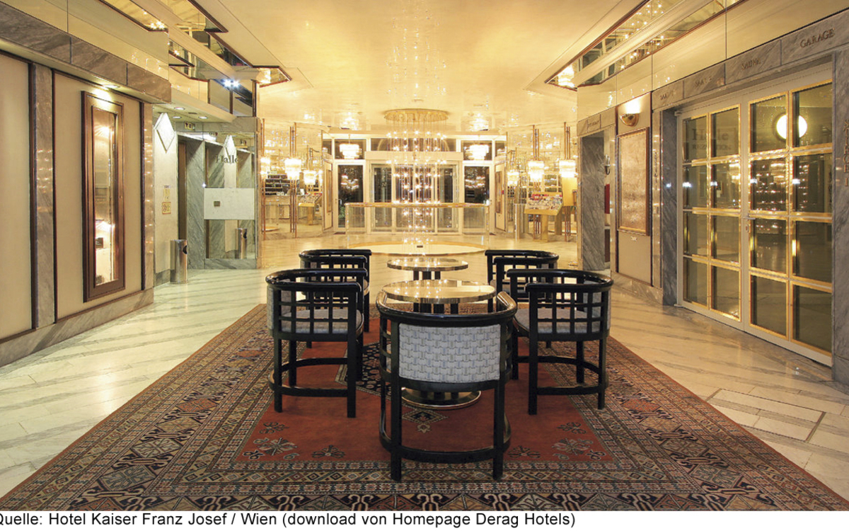 Das ****"Derag Livinghotel Kaiser Franz Joseph" befindet sich im Stadtteil Döbling in bester Umgebung, denn seit langem ist der 19te Bezirk bevorzugter Standort vieler Botschaften und eine erstklassige Wohngegend. Der romantische Wienerwald und der bekannte Heurigenort Grinzing sind nur wenige Minuten entfernt. Die Straßenbahn hält in unmittelbarer Nähe zum Hotel und bringt den Gast in 15 Minuten in die pulsierende Innenstadt. Alle Zimmer verfügen über Bad oder Dusche/WC, Haartrockner, Telefon und Sat-TV.