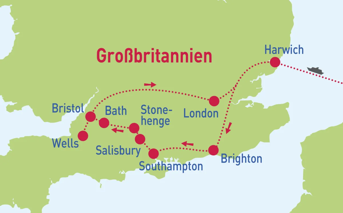 Ihr erster Halt heute ist Bristol. Bei einer Stadtrundfahrt sehen Sie u.a. die Kathedrale, die Clifton Suspension Bridge u.v.m. Weiter geht es über Wells mit der berühmten Kathedrale und ihren mittelalterlichen Straßenzügen zu den Tropfsteinhöhlen von Cheddar. Weiterfahrt in den Raum London zur Übernachtung.