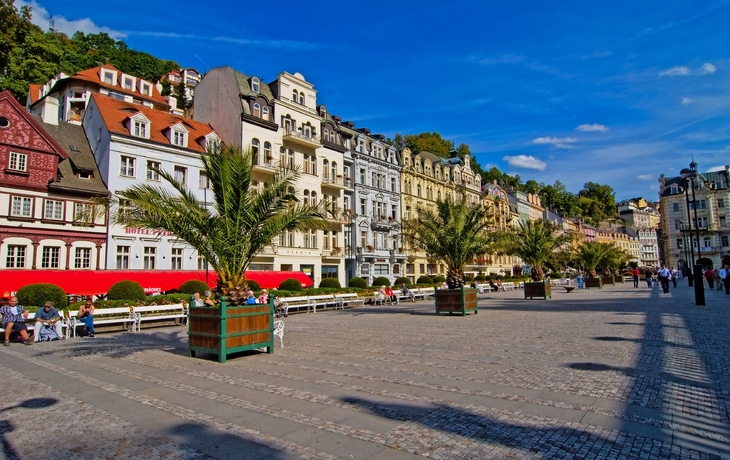 Elegante, prächtige Kur-Kolonnaden, eine herrliche Lage inmitten eines bewaldeten Tals und wohltuende Heilmittel – all das erwartet Sie in Karlsbnad, dem größten Heilbad des Böhmischen Bäderdreiecks. Hier trafen sich im 18. und 19. Jahrhundert Kaiser, Könige, Zaren und Staatsmänner. Auch heute noch ist die Stadt ein beliebter Ort für Erholungssuchende aus aller Welt.