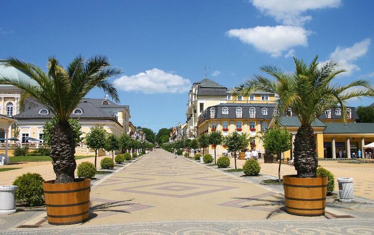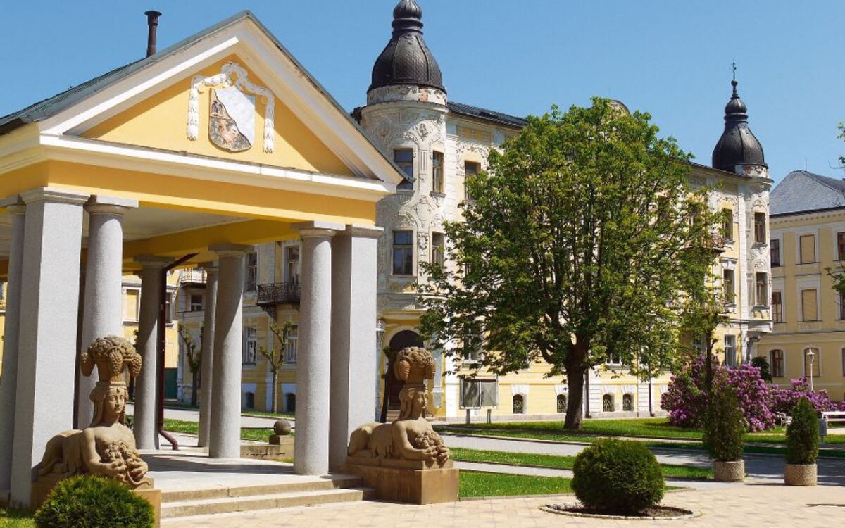Nach dem Fund der lokalen Heilmittel – schwefelhaltiges Moor, Heilgas und 20 Mineralquellen – entstand nach und nach ein einzigartiges Stadtbild im Empire-Stil. Nach einer gelungenen Restaurierung präsentiert sich Franzensbad heute wieder in alter Pracht. Das bezaubernde städtische Zentrum um den Friedensplatz mit seinen charakteristischen ockergelben Gebäuden, zahlreichen Kolonnaden und Pavillions, steht sogar unter Denkmalschutz. Die gepflegten Parkanlagen, das gemäßigte Klima, die saubere Luft und die entspannte Atmosphäre des Kurorts, unterstützen die heilende Wirkung der Franzensbader Heilmittel auf wunderbare Weise. Während seiner 200-jährigen Kurgeschichte haben viele Berühmtheiten aus Kultur und Politik, wie bspw. Johann Wolfgang von Goethe, Franz Kafka und Ludwig van Beethoven, ganz bewusst Franzensbad für Ihren Erholungsaufenthalt gewählt, um dem Trubel der anderen böhmischen Kurorte zu entgehen. Zu Ehren einer dieser berühmten Persönlichkeiten erhielt das Heilbad 1807 sogar seinen Namen, von Franz I. Kaiser von Österreich. Lassen auch Sie sich von der einzigartigen Atmosphäre Franzensbads verzaubern!