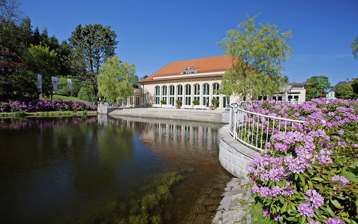 Das Gesundheitsresort liegt ruhig, inmitten des 25 Hektar großen, historischen Kurparks von Bad Brambach.